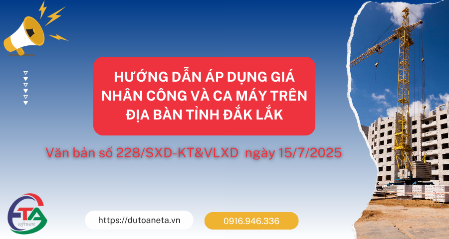 Ngày 15 tháng 7 năm 2025 Sở xây dựng Đắk Lắk ban hành văn bản số 228/SXD-KT&VLXD; Hướng dẫn áp dụng giá nhân công và...